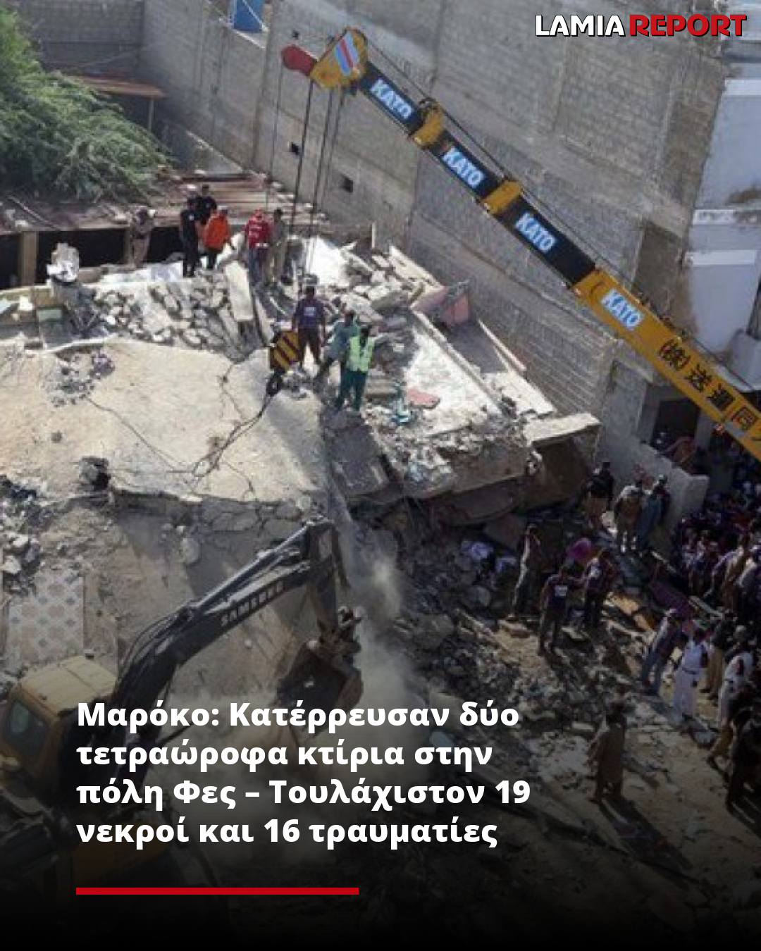 Τουλάχιστον 19 άνθρωποι έχασαν τη ζωή τους και 16 τραυματίστηκαν νωρίς το πρωί της Τετάρτης, όταν δύο πολυκατοικίες κατέρρευσαν στην παλιά πόλη του Φες, στο Μαρόκο, μία από τις ιστορικότερες πόλεις της χώρας, μεταδίδει το Reuters.