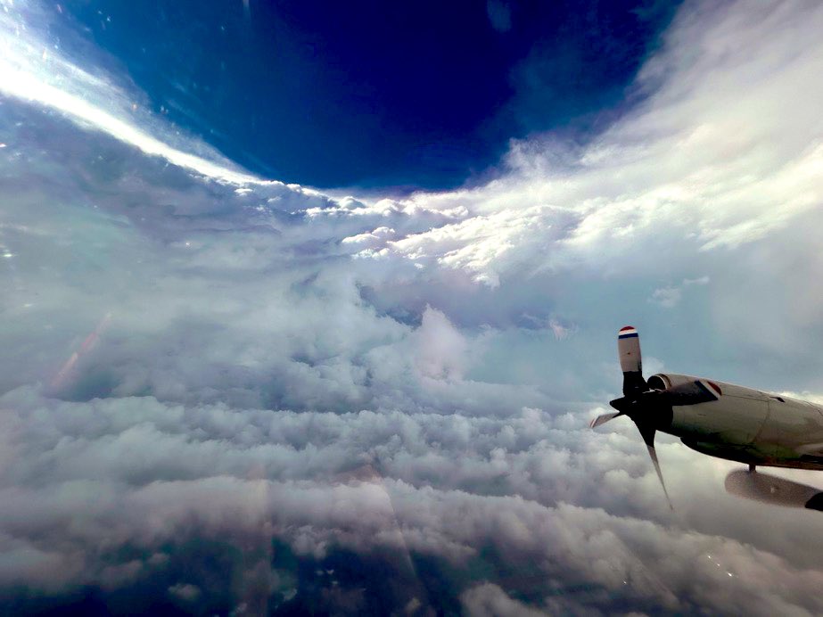 Τα πλάνα που κατέγραψε το πλήρωμα κόβουν την ανάσα: το αεροσκάφος φαίνεται να διαπερνά στρώματα στροβιλιζόμενων νεφών, προτού εισέλθει στο «μάτι» του κυκλώνα – μια ζώνη απρόσμενης νηνεμίας και καθαρού ουρανού, περικυκλωμένη από τείχη σύννεφων δεκάδων χιλιομέτρων. Οι εικόνες αποκαλύπτουν για πρώτη φορά, με τέτοια καθαρότητα, τη δυναμική της εσωτερικής δομής ενός τυφώνα κατηγορίας 5.