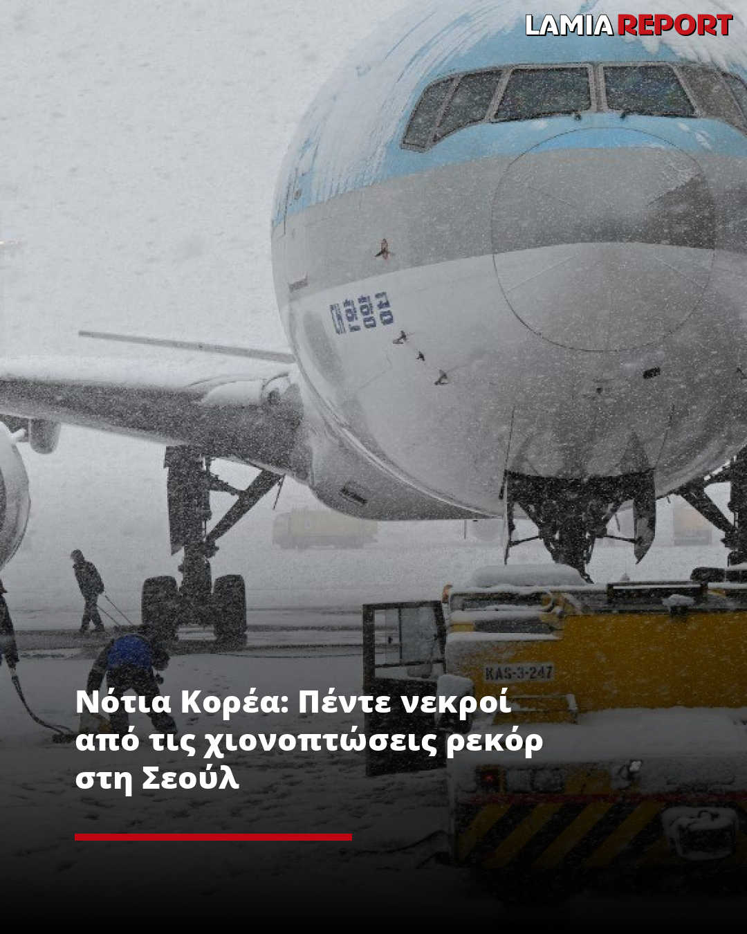 Το Yonhap μετέδωσε ότι τουλάχιστον πέντε θάνατοι που σχετίζονται με το ρεκόρ χιονόπτωσης καταγράφηκαν στην επαρχία Γκιεονγκί, η οποία γειτνιάζει με τη Σεούλ, από χθες, Τετάρτη. Οι τέσσερις από αυτούς έχασαν τη ζωή τους όταν κατέρρευσαν κατασκευές λόγω του μεγάλου βάρους του χιονιού, και ένας σε τροχαίο με λεωφορείο που προκλήθηκε από την ολισθηρότητα του δρόμου λόγω του παγετού, σύμφωνα με το νοτιοκορεατικό πρακτορείο ειδήσεων.