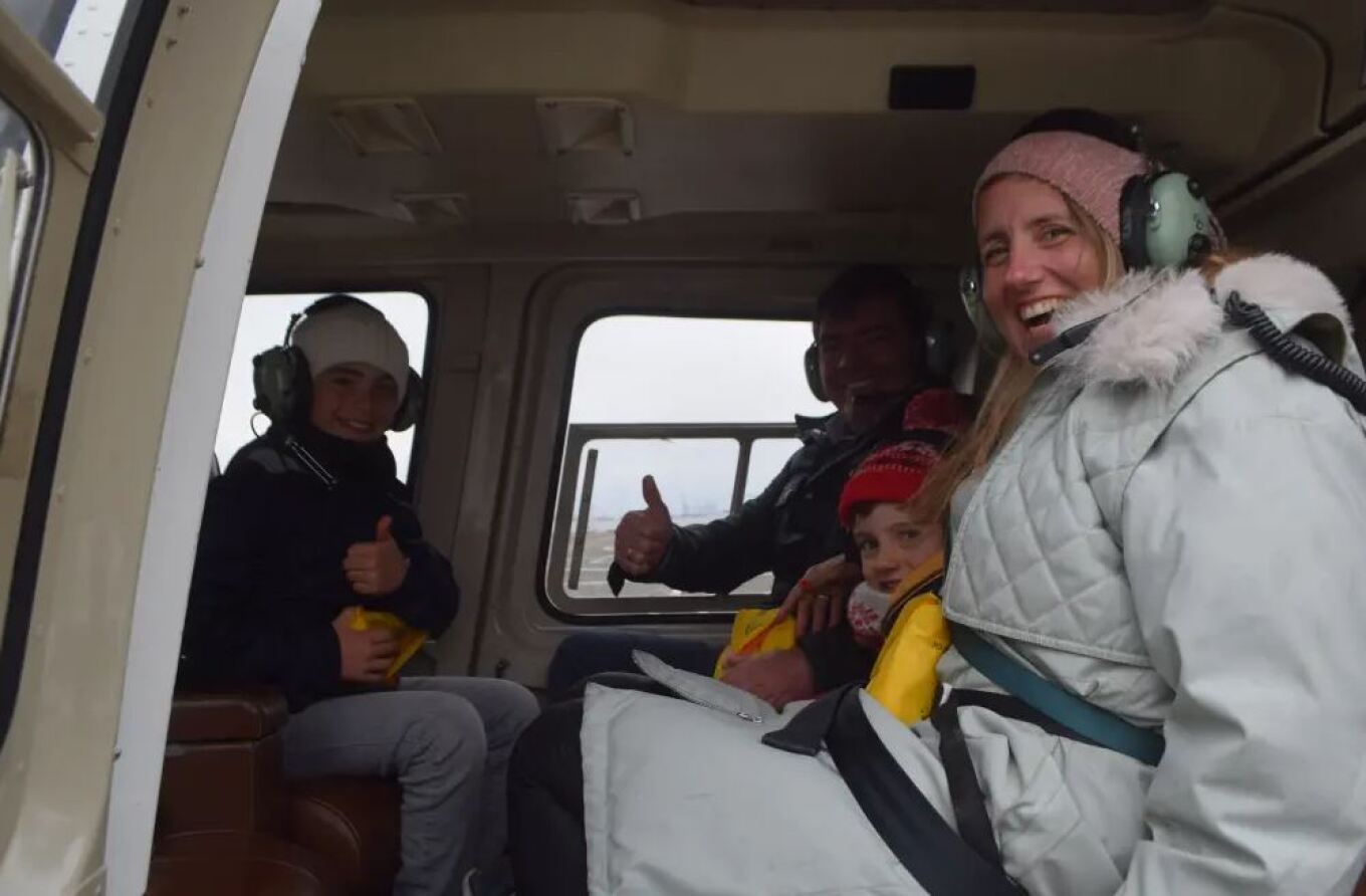 Σε μια δεύτερη φωτογραφία όλη η οικογένεια ποζάρει χαμογελαστή μέσα στο Bell 206L-4 LongRanger IV, όπως ήταν ο τύπος του ελικοπτέρου.