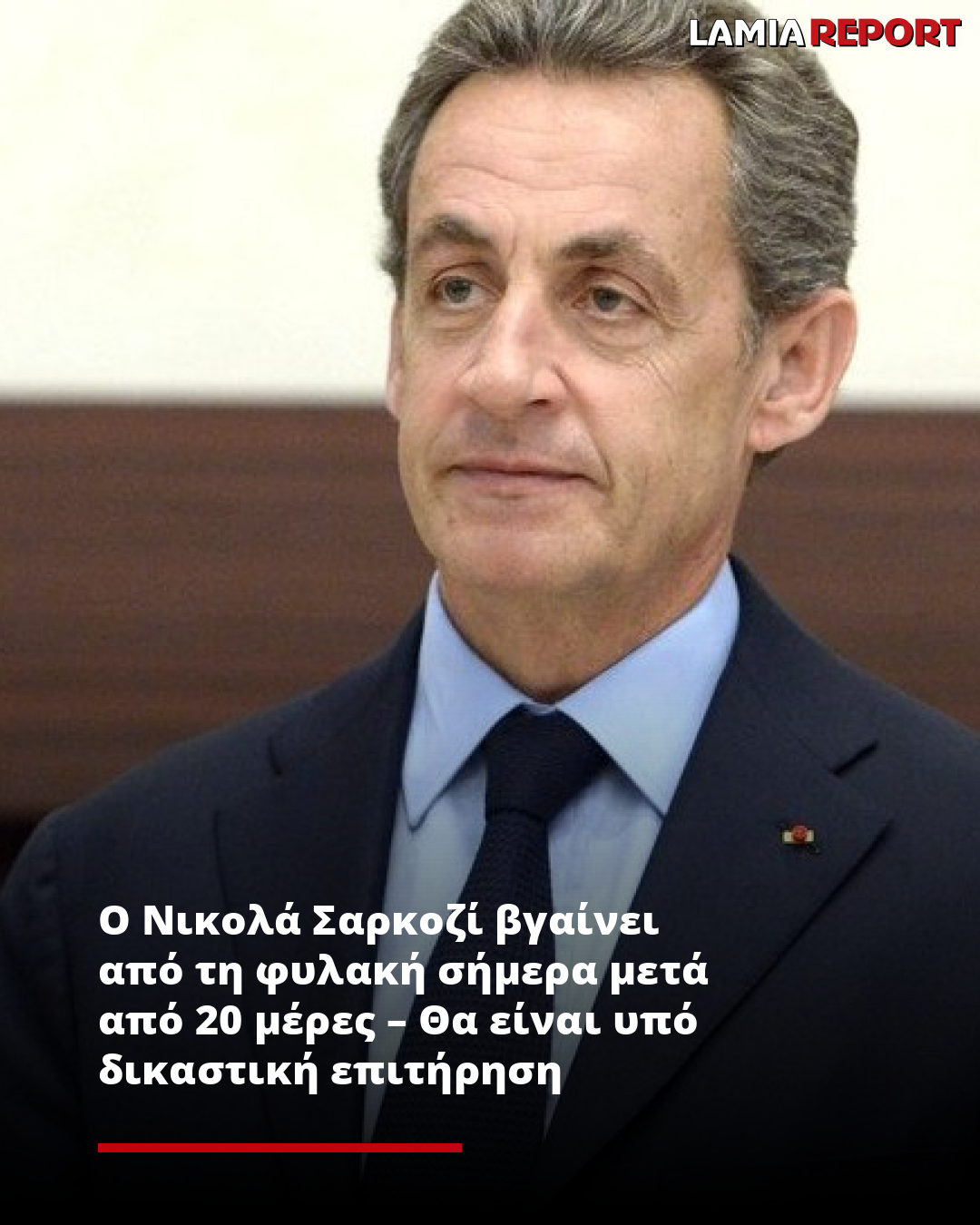 Την αποφυλάκιση του Νικολά Σαρκοζί αποφάσισε το μεσημέρι της Δευτέρας (10.11.2025) το Εφετείο του Παρισίου, μετά από 20 μέρες. Ο πρώην πρόεδρος της Γαλλίας θα τεθεί υπό δικαστική επιτήρηση.