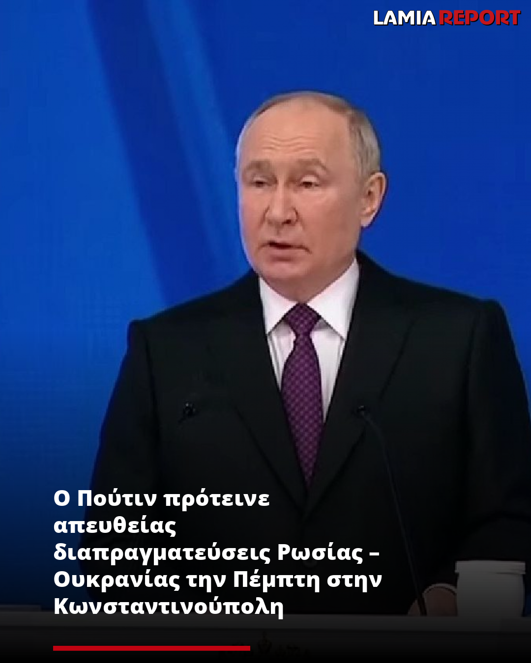 Λίγες ώρες μετά την παρουσία Μερτς, Μακρόν, Τουσκ και Στάρμερ στον Κίεβο και το μήνυμα των Ευρωπαίων προς την Μόσχα (εκεχειρία 30 ημερών αλλιώς έρχονται νέες πιο αυστηρές κυρώσεις), ο Βλαντιμίρ Πούτιν πρότεινε την «απευθείας» και «χωρίς προαπαιτούμενα» διαπραγματεύσεις μεταξύ Ρωσίας και Ουκρανίας την 15η Μαΐου στην Κωνσταντινούπολη.
