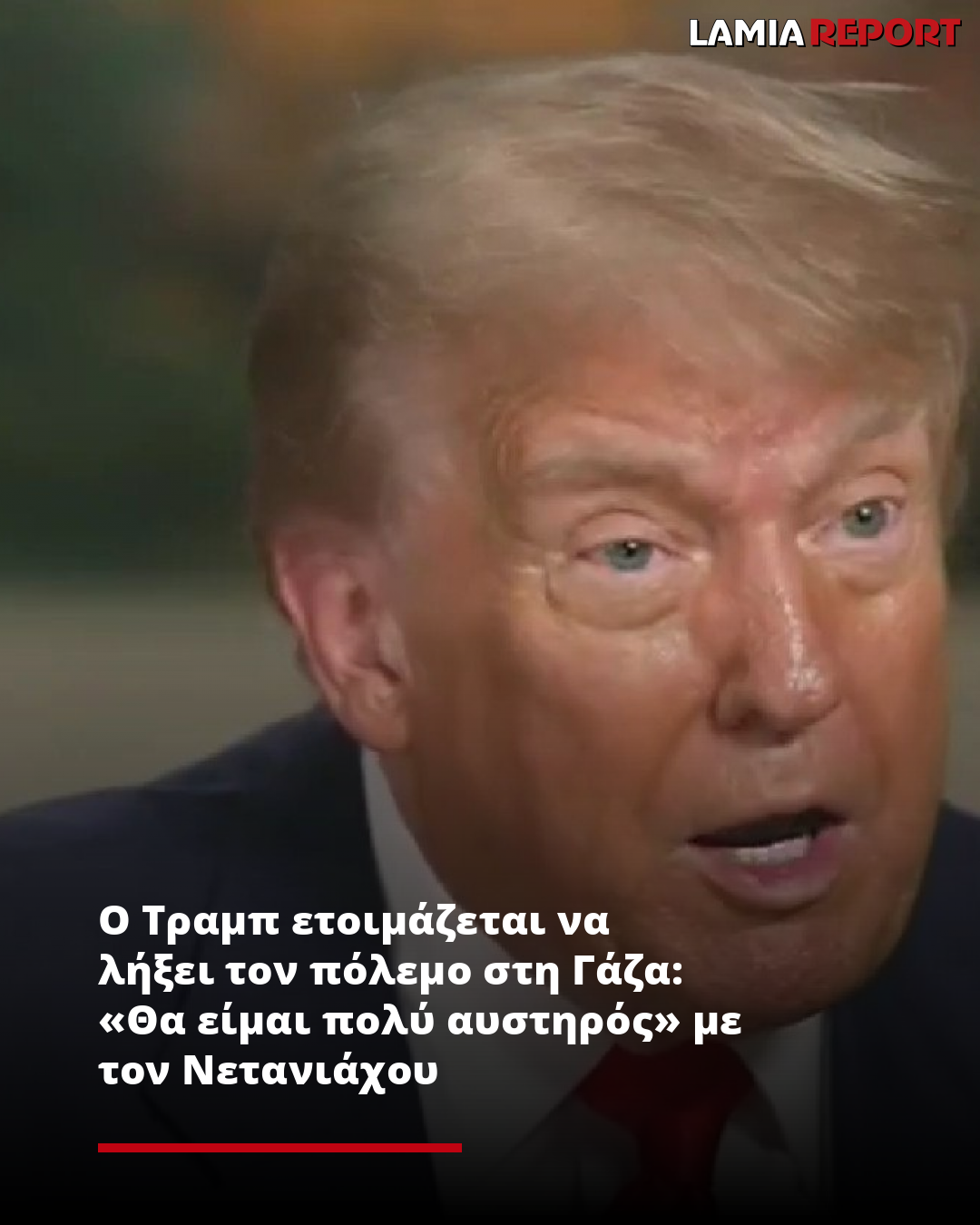 «Αλλά αυτός (ο Νετανιάχου) το θέλει επίσης. Έρχεται εδώ την προσεχή εβδομάδα. Θέλει επίσης αυτό να τελειώσει», συνέχισε ο Τραμπ κατά τη διάρκεια της επίσκεψής του σε ένα νέο κέντρο κράτησης για παράτυπους μετανάστες στη Φλόριντα.