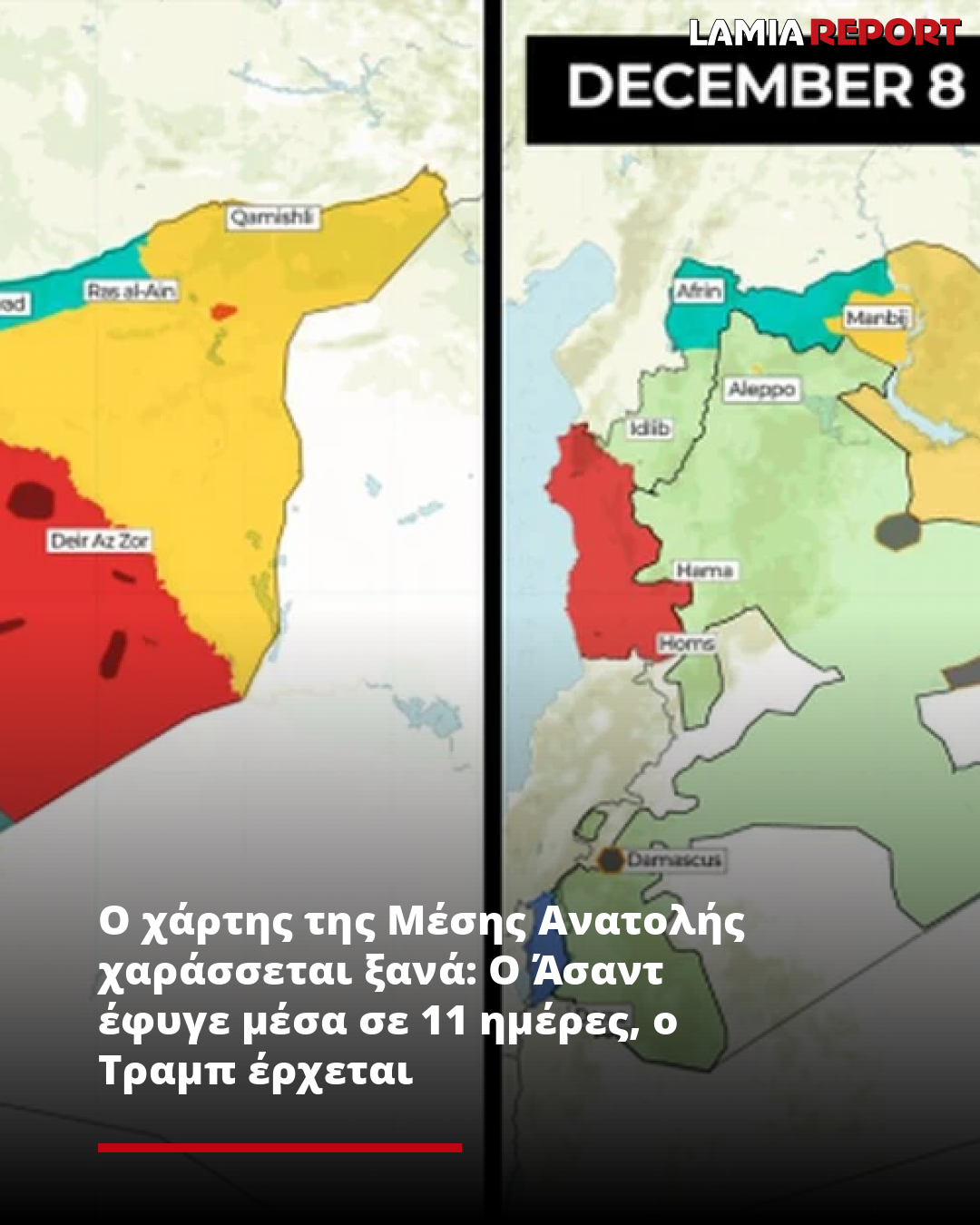 Ο χάρτης της Μέσης Ανατολής χαράσσεται ξανά: Ο Άσαντ έφυγε μέσα σε 11 ημέρες, ο Τραμπ έρχεται