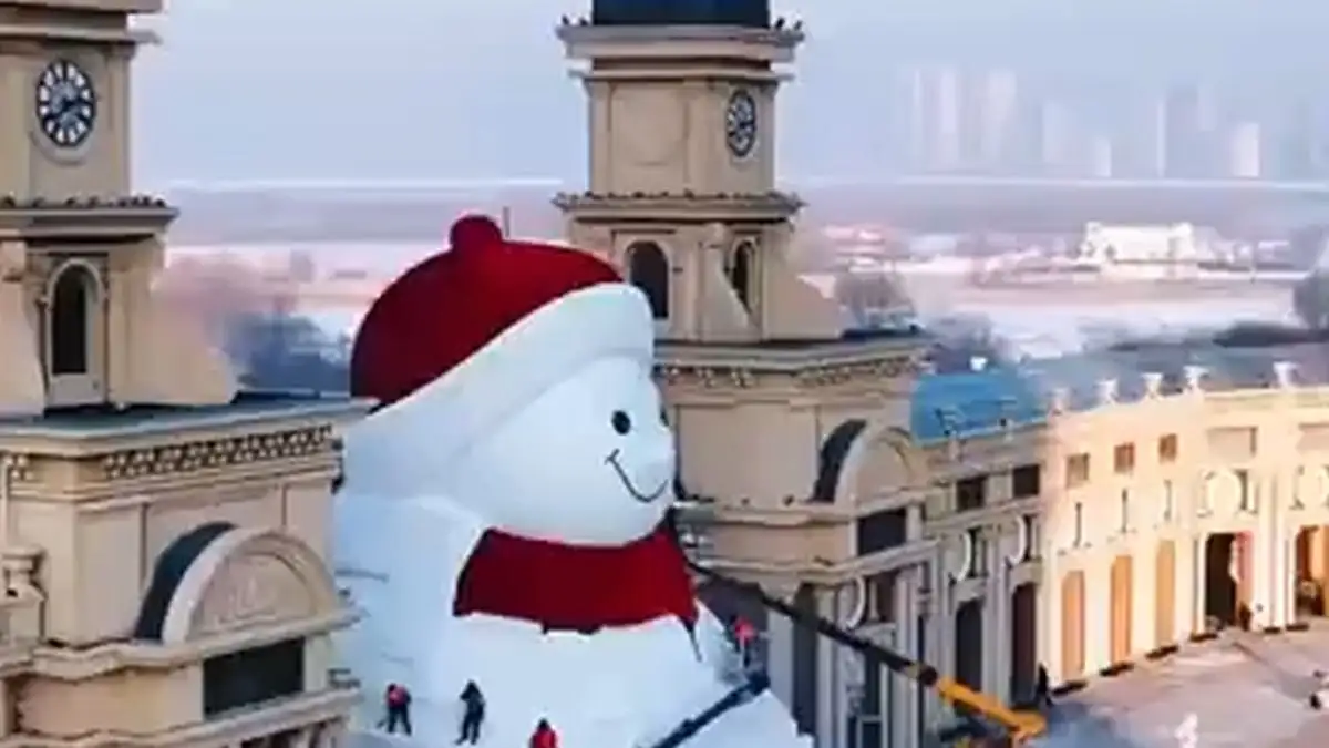 Μία εικόνα από την Κίνα που κάνει τον γύρο των social media ξεφεύγει από τη συνηθισμένη, βαριά ειδησεογραφία. Στο Qunli Music Park, στην πόλη Χαρμπίν της επαρχίας Χεϊλονγκτζιάνγκ, εργάτες και καλλιτέχνες συνεργάστηκαν για να στήσουν έναν γιγαντιαίο χιονάνθρωπο, ύψους 19 μέτρων, κατασκευασμένο από χιλιάδες κυβικά μέτρα χιονιού.
