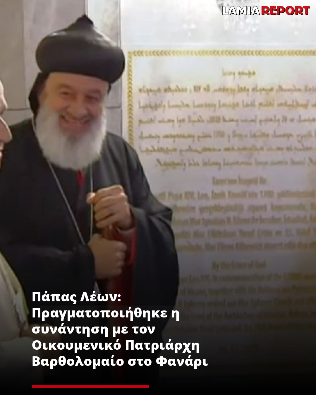 Στο Φανάρι βρίσκεται ο Πάπας Λέων το μεσημέρι του Σαββάτου (29.11.25) για την κοινή διακήρυξη που θα συνυπογράψει με τον Οικουμενικό Πατριάρχη Βαρθολομαίο.