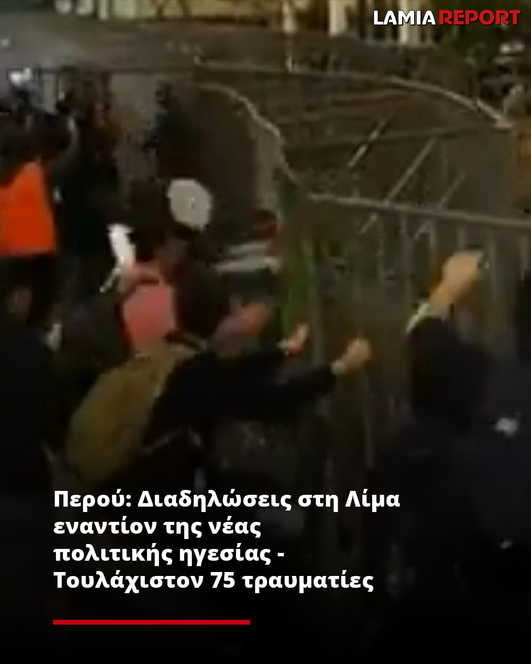 Τουλάχιστον 75 άνθρωποι τραυματίστηκαν σε διαδήλωση στη Λίμα χθες Τετάρτη, στην πλειονότητά τους αστυνομικοί, ανακοίνωσε ο πρόεδρος του Περού Χοσέ Χερί, που ανέλαβε μόλις την περασμένη εβδομάδα την εξουσία στη χώρα, που σείεται εδώ κι εβδομάδες από τις κινητοποιήσεις εναντίον της πολιτικής ηγεσίας και της ανασφάλειας.
