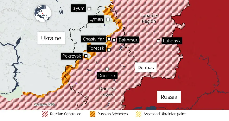 Ανάλυση του Sky News για την κατάσταση στο πεδίο – Ποιες περιοχές πολιορκούν επί χρόνια οι Ρώσοι και πού εμφανίζουν κέρδη οι Ουκρανοί