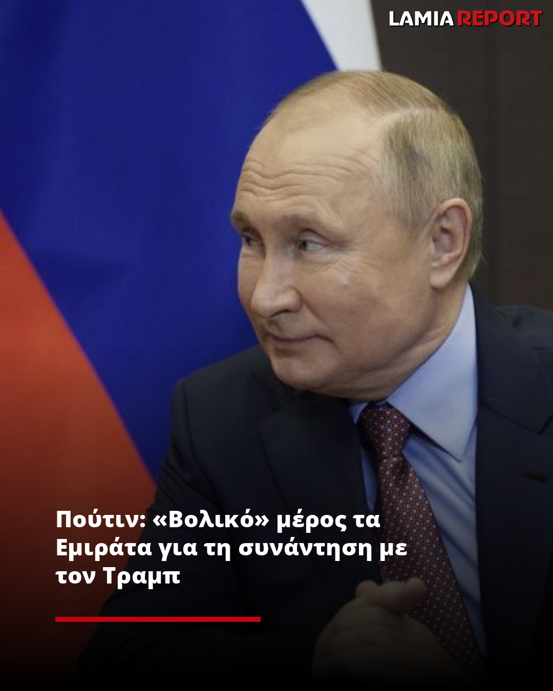 Ο Ρώσος πρόεδρος Βλαντίμιρ Πούτιν δήλωσε σήμερα ότι η συνάντησή του με τον Αμερικανό ομόλογό του Ντόναλντ Τραμπ, η οποία έχει προγραμματιστεί για τις επόμενες ημέρες σύμφωνα με το Κρεμλίνο, θα μπορούσε να πραγματοποιηθεί στα Ηνωμένα Αραβικά Εμιράτα.
