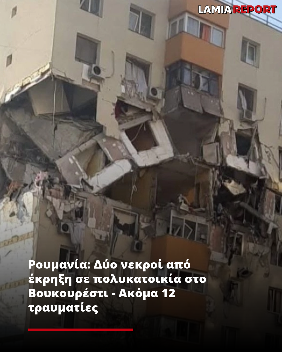 Δύο άνθρωποι σκοτώθηκαν και 12 τραυματίστηκαν σήμερα σε έκρηξη σε οκταώροφη πολυκατοικία στην πρωτεύουσα της Ρουμανίας, Βουκουρέστι, από την οποία κατέρρευσαν όροφοι, όπως μετέδωσαν τοπικά μέσα ενημέρωσης.