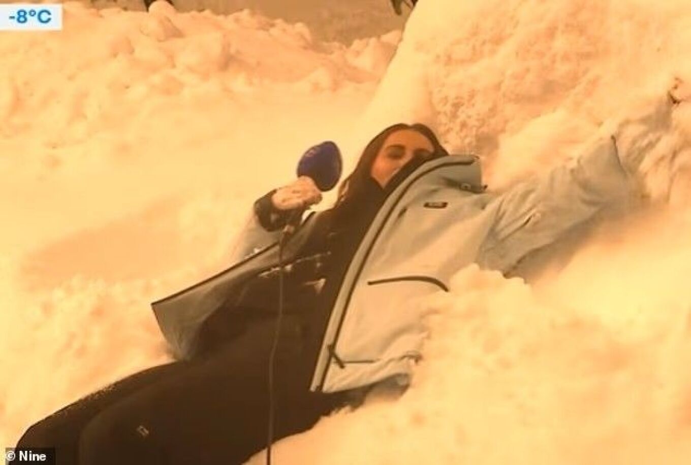 Το αποκορύφωμα ήρθε όταν, στο τέλος της σύνδεσης, η δημοσιογράφος έπεσε στο χιόνι για να κάνει «αγγελάκια». Οι παρουσιαστές στο στούντιο προσπάθησαν αρχικά να «καλύψουν» την κατάσταση, αποδίδοντας την περίεργη ομιλία της στο τσουχτερό κρύο που «πάγωσε τα χείλη της».
