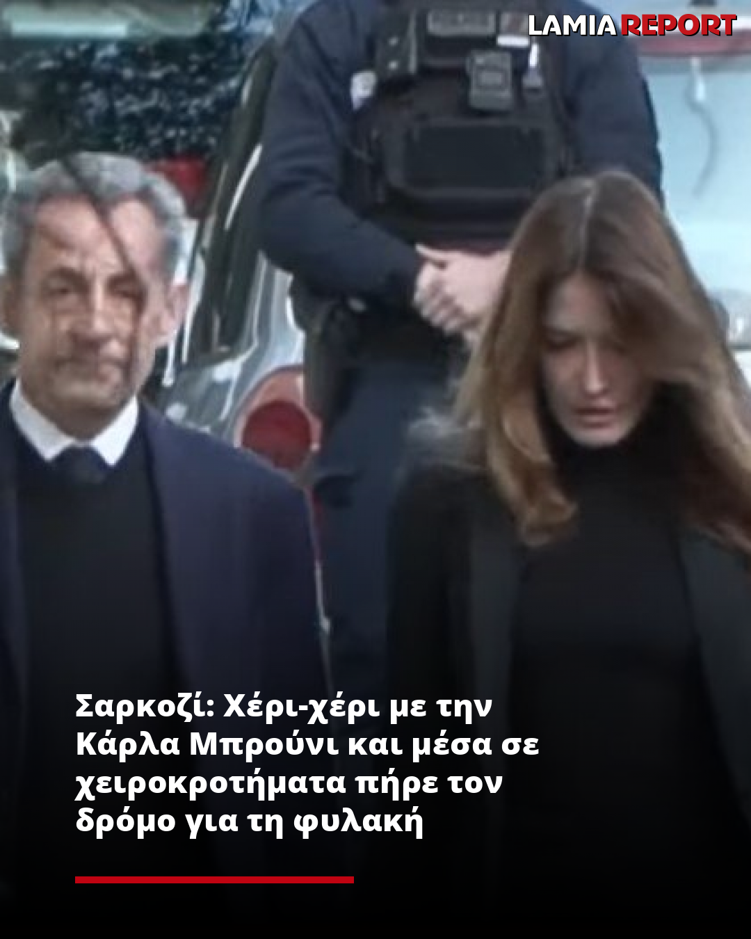 Χέρι-χέρι με τη σύντροφό του, Κάρλα Μπρούνι, ο Νικολά Σαρκοζί έφυγε λίγο μετά τις 10 το πρωί (ώρα Ελλάδας) από το σπίτι του για να κατευθυνθεί στη φυλακή, υπό τις επευφημίες του πλήθους που τον περίμεναν.
