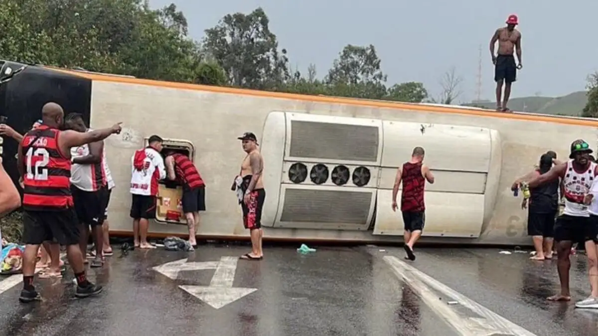 Un bus con hinchas del Flamengo volcó en Barra Mansa, cerca de Río de Janeiro, cuando se dirigían a Argentina para el partido ante Racing. pic.twitter.com/bxObX933eE
