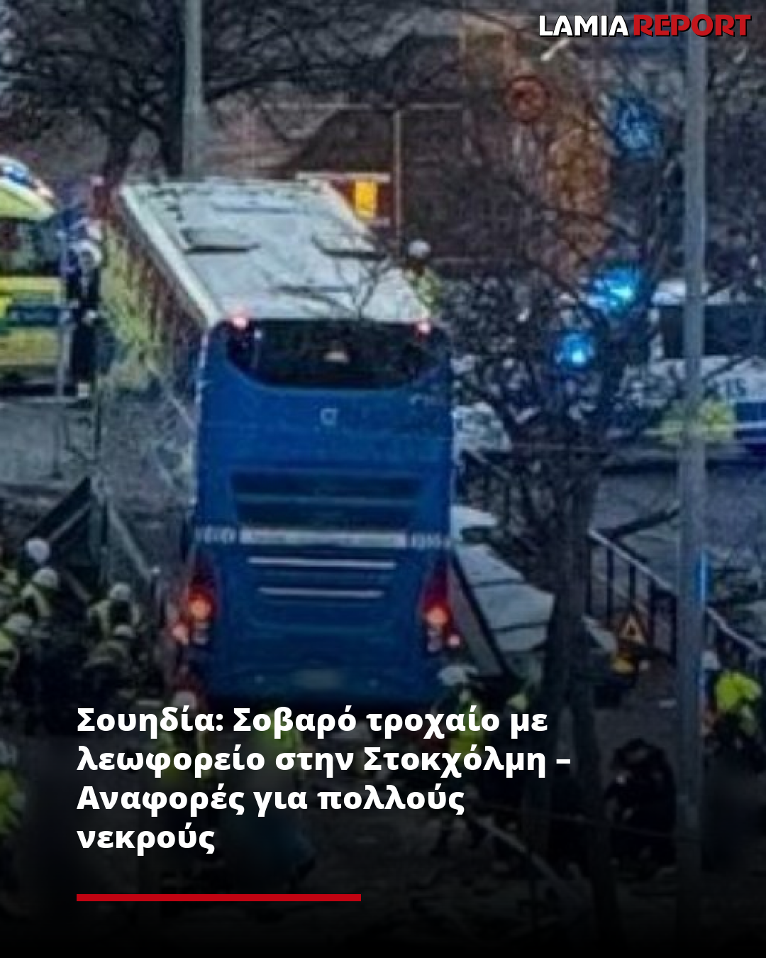 Σύμφωνα με πληροφορίες το τροχαίο με το λεωφορείο σημειώθηκε στην περιοχή Östermalm της Σουηδίας, με πολλά άτομα να έχουν χάσει τη ζωή τους και αρκετούς να έχουν τραυματιστεί, σύμφωνα με πληροφορίες της Aftonbladet.