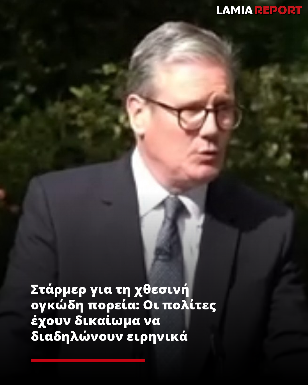 «Οι άνθρωποι έχουν δικαίωμα να διαδηλώνουν ειρηνικά. Αυτό βρίσκεται στον πυρήνα των αξιών της χώρας μας», τόνισε ο Στάρμερ στο Χ.