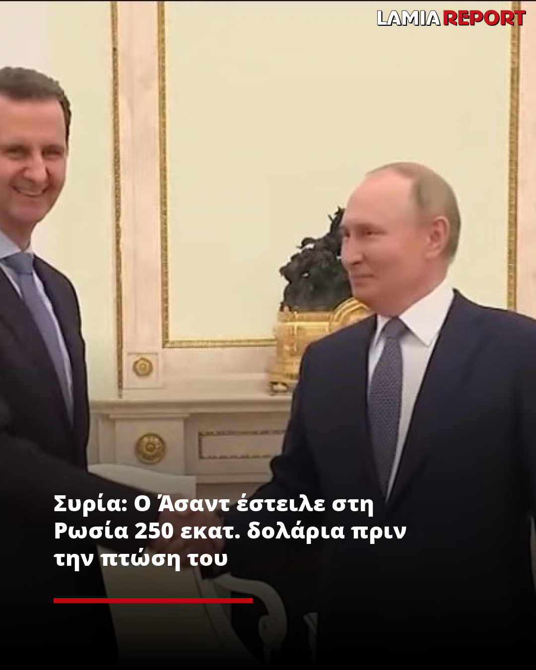 Με γεμάτες τις τσέπες φαίνεται πως έφυγε από τη Συρία ο Μπασάρ αλ Άσαντ, καθώς όπως αποκαλύπτει δημοσίευμα των Financial Times, ο ίδιος είχε φροντίσει να μεταφέρει μεγάλο μέρος του πλούτου της Συρίας στην Ρωσία τα τελευταία δυο χρόνια.