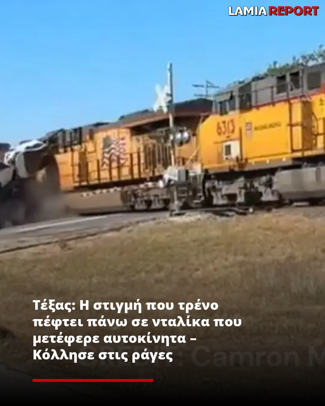 Τέξας: Η στιγμή που τρένο πέφτει πάνω σε νταλίκα που μετέφερε αυτοκίνητα – Κόλλησε στις ράγες