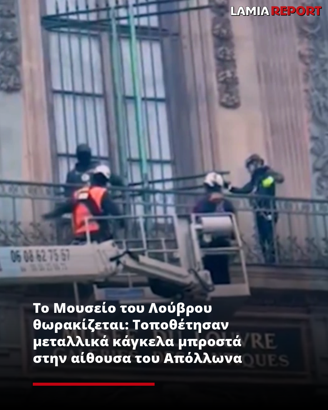 Εργασίες ενίσχυσης της ασφάλειας πραγματοποιεί το Μουσείο του Λούβρου στο Παρίσι, καθώς συνεργεία τοποθέτησαν μεταλλικά κάγκελα στο παράθυρο από το οποίο εισέβαλαν οι δράστες της εντυπωσιακής ληστείας του Οκτωβρίου στην Αίθουσα Απόλλωνα.