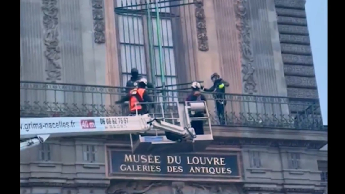 Ένας ανυψωτικός γερανός φορτίου, σύμφωνα με το protothema.gr, υψώθηκε το πρωί της Τρίτης προς το Μουσείο του Λούβρου για την αποκατάσταση ενός από τα σοβαρότερα κενά ασφαλείας στην ιστορία του μουσείου. Αυτή τη φορά, επρόκειτο για συνεργεία που τοποθετούσαν μεταλλικά κάγκελα στο παράθυρο από το οποίο μπήκαν οι δράστες.