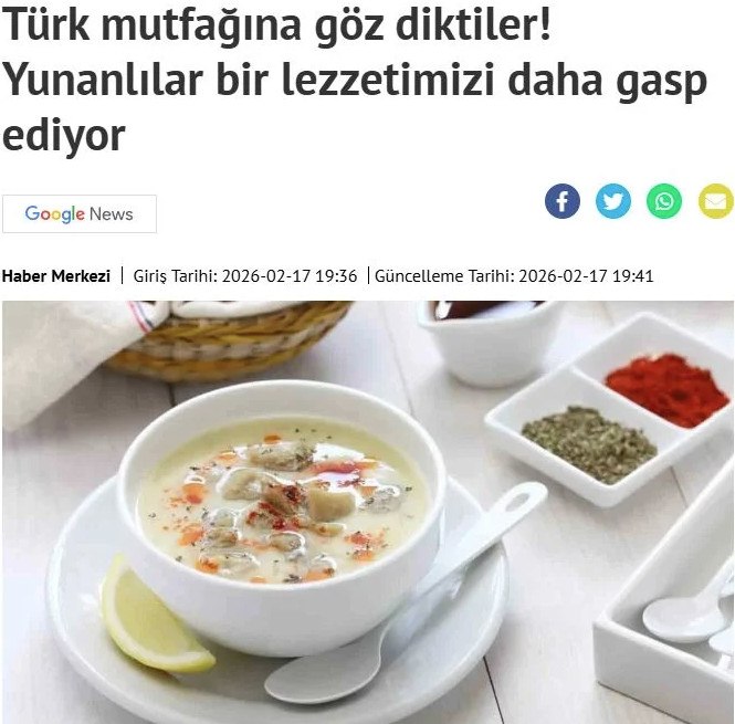 Η ιστοσελίδα Haberler δημοσίευσε άρθρο με τίτλο «Η Ελλάδα λαμβάνει μέτρα σχετικά με τη σούπα από πατσά», κάνοντας λόγο για «νέο κεφάλαιο» στη μακροχρόνια γαστρονομική αντιπαλότητα μεταξύ των δύο χωρών και υποστηρίζοντας ότι «η Αθήνα έχει βάλει στο στόχαστρο τη σούπα από πατσά».