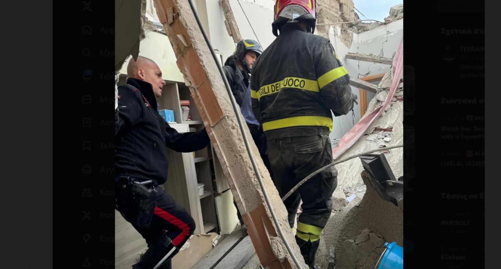 Σύμφωνα με την εφημερίδα La Repubblica, είναι σε εξέλιξη επιχείρηση απεγκλωβισμού της μητέρας και μιας γειτόνισσας της οικογένειας, ενώ ο πατέρας και ο μικρότερος γιος ανασύρθηκαν ζωντανοί από τα συντρίμμια.