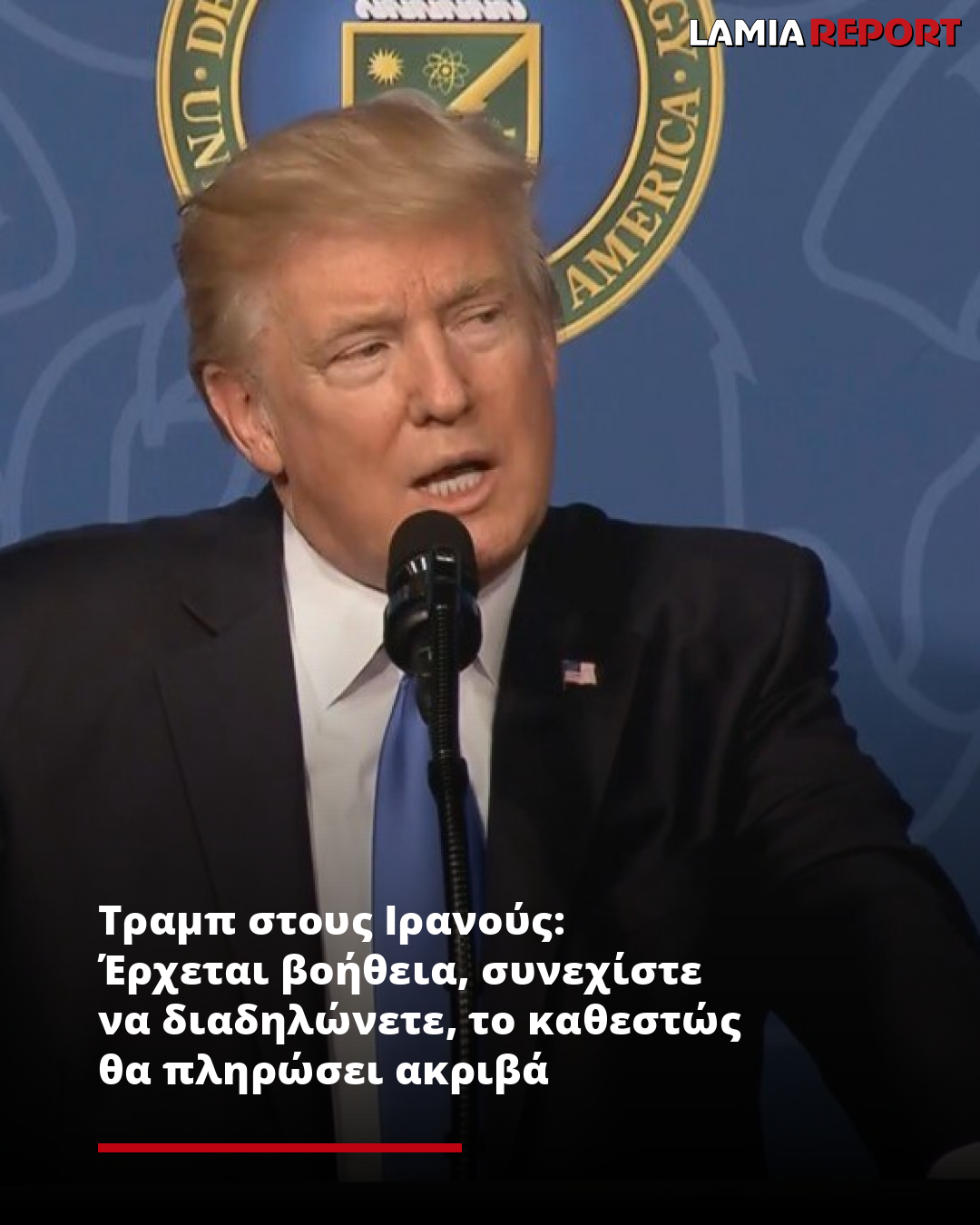 Ο Αμερικανός πρόεδρος, σε ανάρτησή του στο Truth Social, ζήτησε από τους Ιρανούς πολίτες να συνεχίσουν να διαδηλώνουν, υποσχέθηκε πως «οι δολοφόνοι θα πληρώσουν ακριβά» και τόνισε πως «η βοήθεια έρχεται».