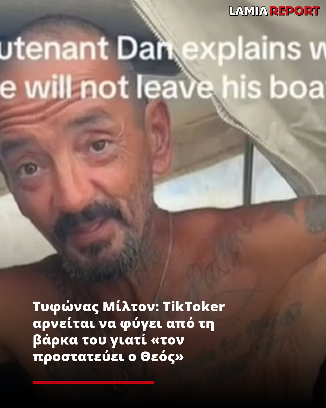 Ένας άνδρας από τη Φλόριντα, με το παρατσούκλι «υπολοχαγός Νταν» αρνήθηκε προκλητικά να εγκαταλείψει το σκάφος του στον Κόλπο της Τάμπα, παρόλο που ο κυκλώνας Μίλτον αναμένεται να πλήξει την περιοχή απόψε (09.10.2024).