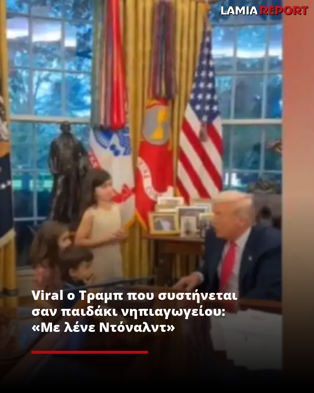 Ο πρόεδρος Τραμπ, όπως αναφέρει το newsit.gr, δέχθηκε μικρά παιδιά στο Οβάλ Γραφείο και μάλιστα συστήθηκε σε ένα από αυτά. «Με λένε Ντόναλντ» του είπε και το παιδάκι ξέσπασε σε γέλια. Το στιγμιότυπο έγινε φυσικά viral. Το βίντεο ανέβασε η Μargo Martin, σύμβουλος επικοινωνίας του Τραμπ.