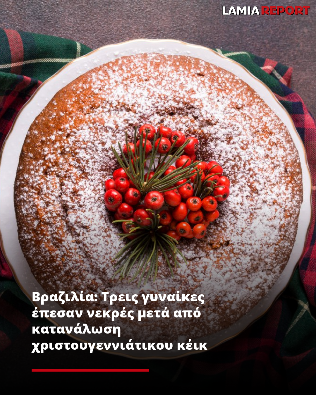 Τραγωδία σε Χριστουγεννιάτικο τραπέζι στη Βραζιλία. Τρεις γυναίκες πέθαναν αφότου κατανάλωσαν μια σπιτική τούρτα κατά τη διάρκεια μιας οικογενειακής συγκέντρωσης – γεγονός που ώθησε την αστυνομία να διερευνήσει τον μυστηριώδη θάνατο του εκλιπόντος συζύγου της αρτοποιού, ο οποίος πέθανε από τροφική δηλητηρίαση μήνες πριν.