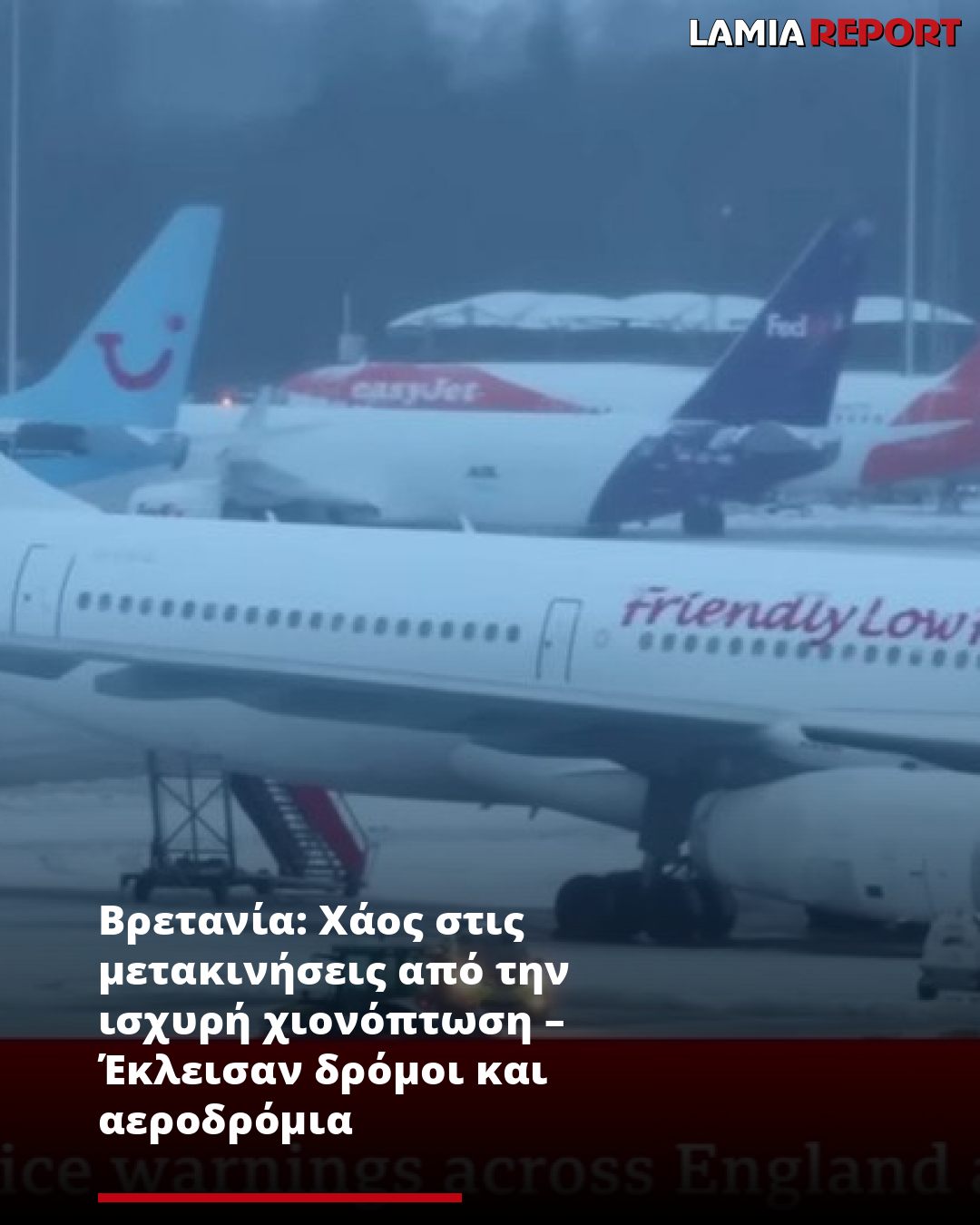 Το πυκνό χιόνι ανάγκασε τα αεροδρόμια Manchester και Liverpool John Lennon να κλείσουν προσωρινά τους διαδρόμους τους. Αν και οι διάδρομοι του Manchester άνοιξαν εκ νέου, οι επιβάτες καλούνται να επικοινωνούν με τις αεροπορικές εταιρείες και να υπολογίζουν περισσότερο χρόνο για τις μετακινήσεις τους.