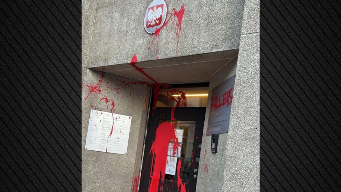 Βρυξέλλες: Άγνωστοι έριξαν κόκκινη μπογιά στο προξενείο της Πολωνίας και έγραψαν το σύνθημα «δολοφόνοι»
