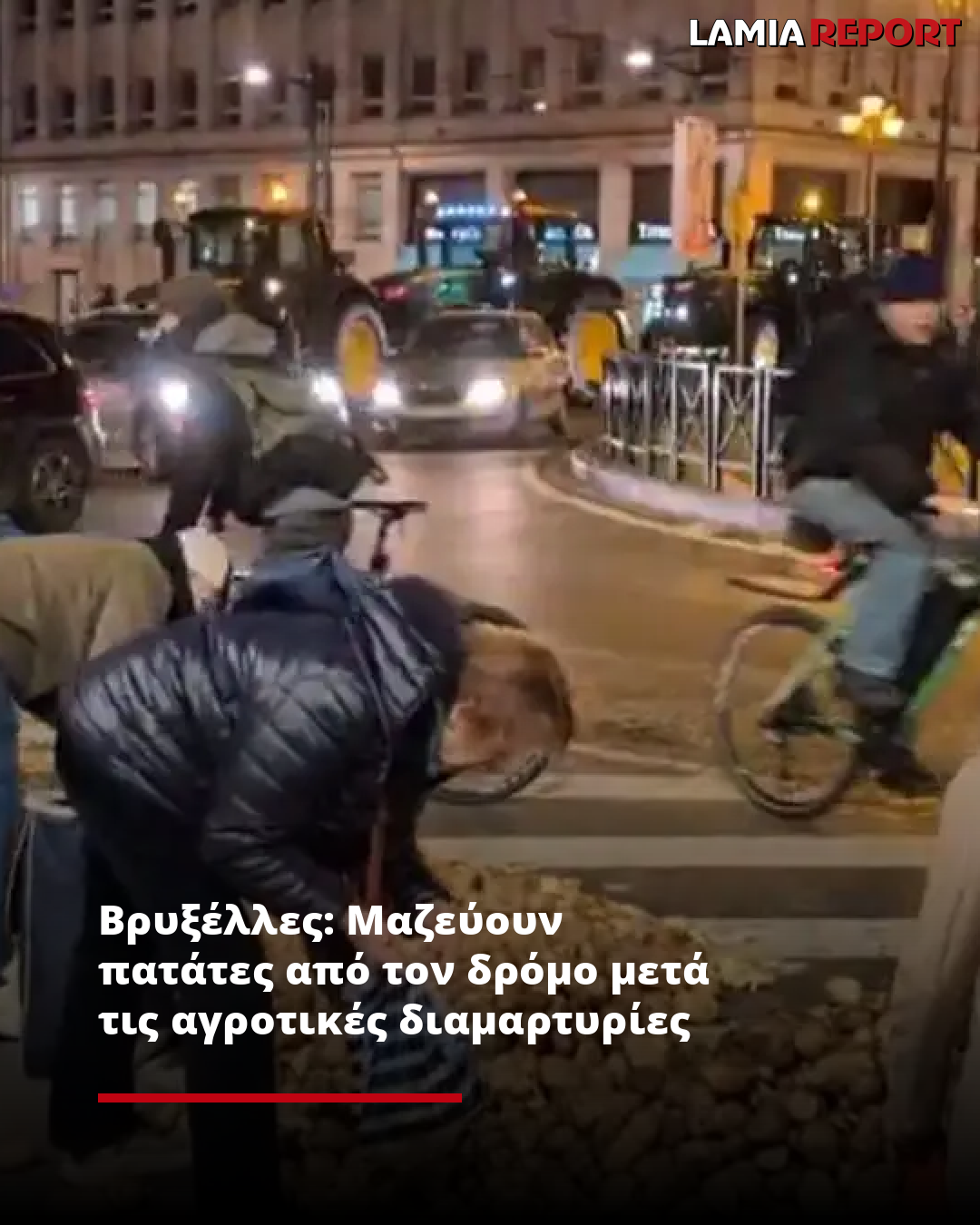 Όπως φαίνεται και στα βίντεο, οι πατάτες – που έριξαν στο δρόμο οι αγρότες κατά τη διάρκεια των κινητοποιήσεων τους – έχουν δημιουργήσει ένα μικρό βουνό στο πλάι του δρόμου στις Βρυξέλλες, ενώ περαστικοί, κρατώντας τσάντες και σακούλες, τις μαζεύουν προσεκτικά από το οδόστρωμα.