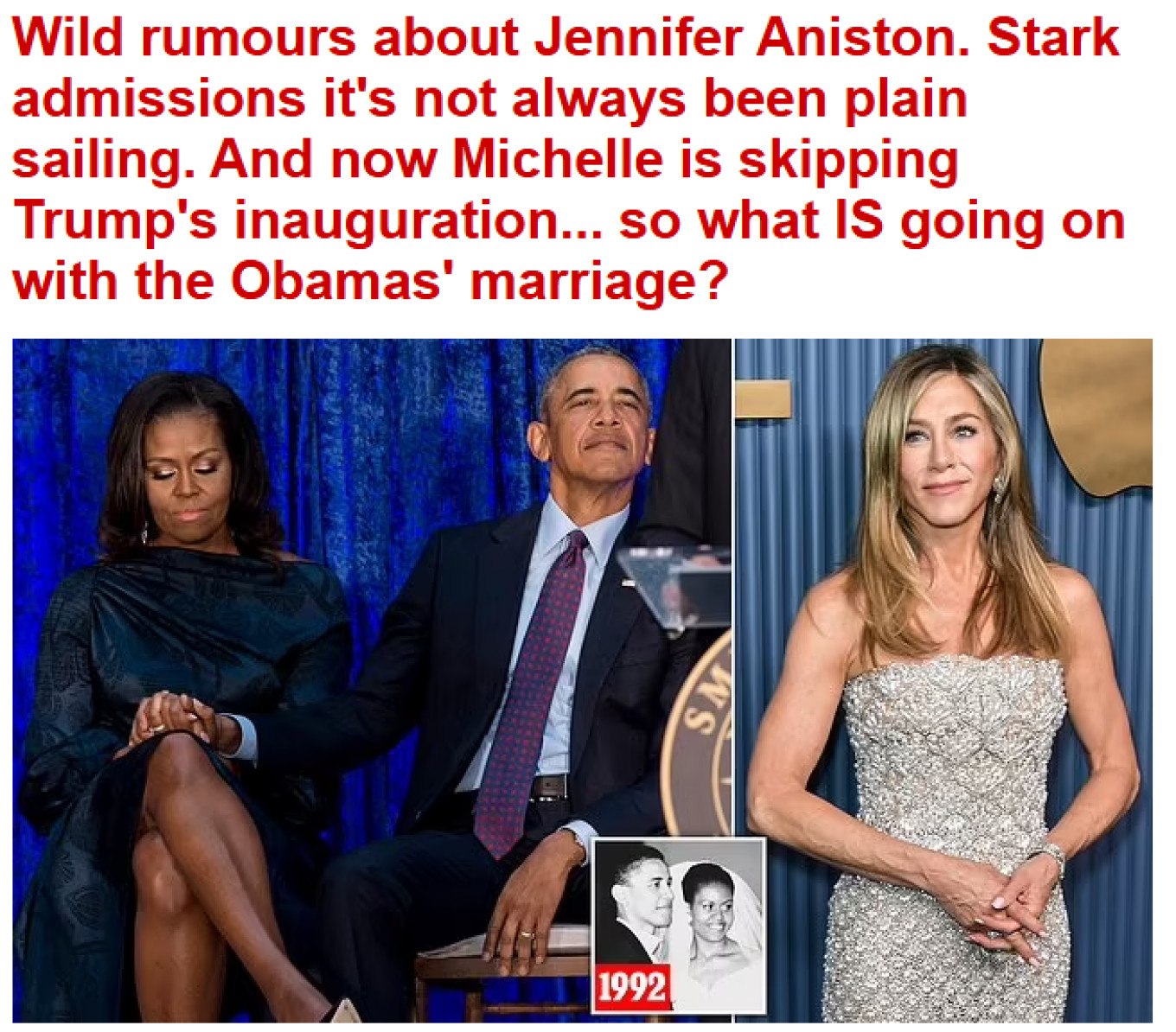 Οι φήμες για πιθανά προβλήματα στο γάμο των Ομπάμα ενισχύθηκαν όταν σκαναλοθηρικά περιοδικά συνέδεσαν τον Μπαράκ με τη Τζένιφερ Άνιστον.