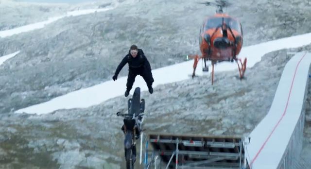Ο επίμονος σταρ πραγματοποίησε 500 άλματα με αλεξίπτωτο και πάνω από 13.000 άλματα motocross για να προετοιμαστεί για τη συγκεκριμένη σκηνή, που κόβει την ανάσα.