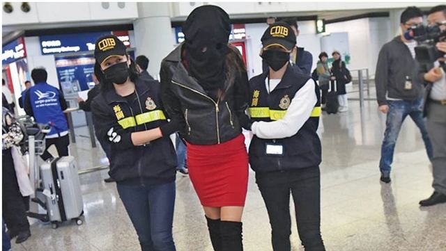 Οι δύο γυναίκες αστυνομικοί από το Χονγκ Κονγκ περιέφεραν σαν «τρόπαιο» την ψηλή κοπέλα με την κουκούλα στο κεφάλι, μέσα στο αεροδρόμιο, ενώ κόσμος την περιεργαζόταν απορημένος. Γύρω της φωτογράφοι, τηλεοπτικές κάμερες και δημοσιογράφοι φώναζαν έχοντας βγάλει το scoop της ημέρας, ενώ λίγο πιο πίσω έτερη αστυνομικός κράταγε το σακίδιο της κοπέλας και μια σακούλα που περιείχε 2,6 κιλά κοκαΐνης.