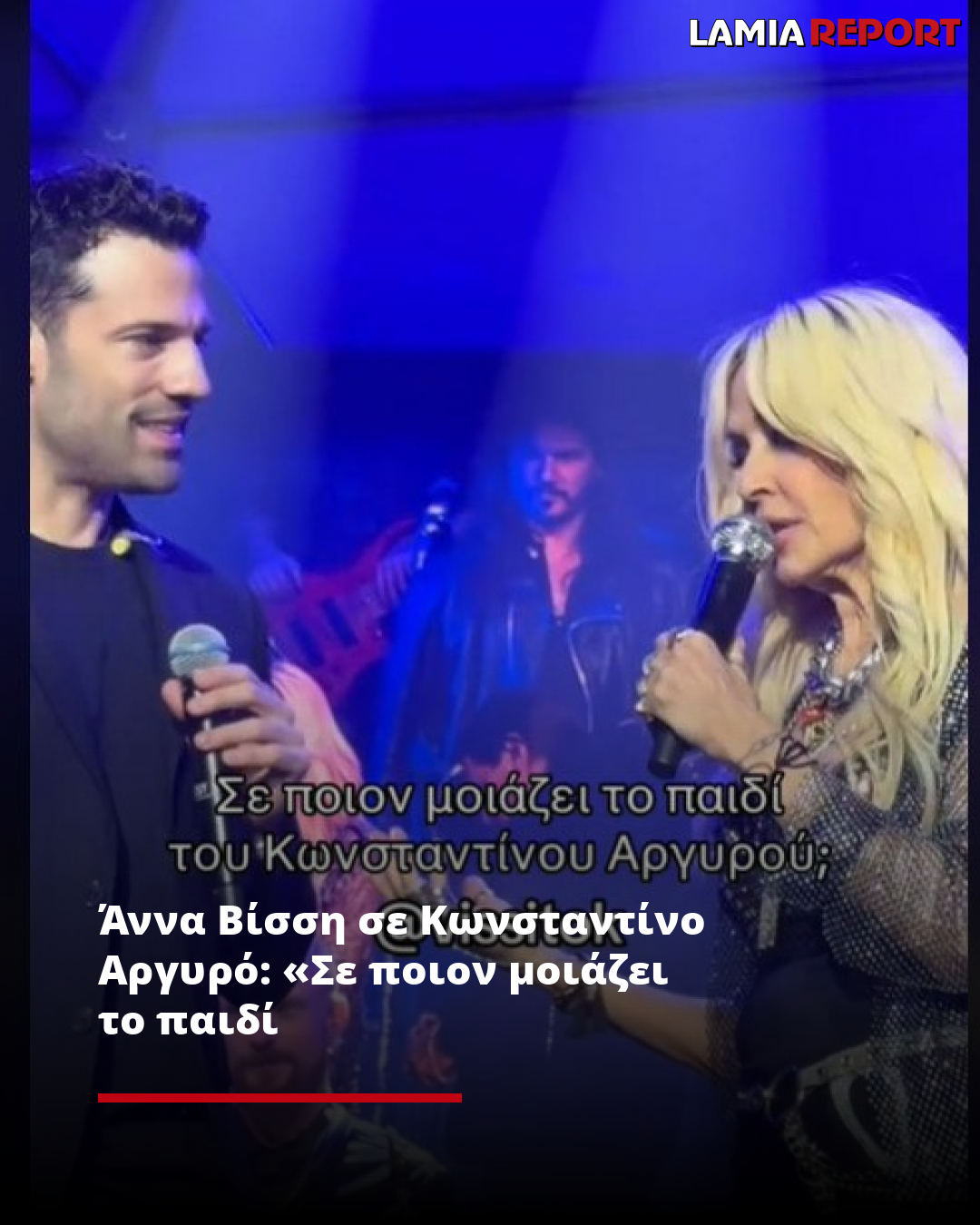 Πιο συγκεκριμένα, η τραγουδίστρια ρώτησε κατά τη διάρκεια της συναυλίας τον συνάδελφό της, για τα χαρακτηριστικά του μωρού. Μέχρι στιγμής, η σύντροφος του Κωνσταντίνου Αργυρού, Αλεξάνδρα Νίκα, έχει μοιραστεί ορισμένες φωτογραφίες με το γιο τους στον προσωπικό της λογαριασμό στα κοινωνικά δίκτυα, επειδή όμως καλύπτει το πρόσωπό του, παραμένει άγνωστο σε ποιον μοιάζει ο μικρός Βασίλης, όπως έχει έχει γίνει γνωστό ότι θα τον ονομάσουν. Αρχικά, η Άννα Βίσση απευθύνθηκε στον Κωνσταντίνο Αργυρό λέγοντας: «Πώς είσαι; Έγινες πατέρας; Είσαι πολύ μικρός για να είσαι πατέρας, αλλά σου πάει». Στη συνέχεια, η τραγουδίστρια χαιρέτησε από τη σκηνή τη σύντροφό του καλλιτέχνη, ρωτώντας την «σε ποιον μοιάζει το παιδί;». Αφού λοιπόν η Άννα Βίσση δεν πήρε απάντηση, στράφηκε ξανά προς τον Κωνσταντίνο Αργυρό λέγοντας: «Πες μου, σε ποιον μοιάζει το παιδί, παιδί μου;».
