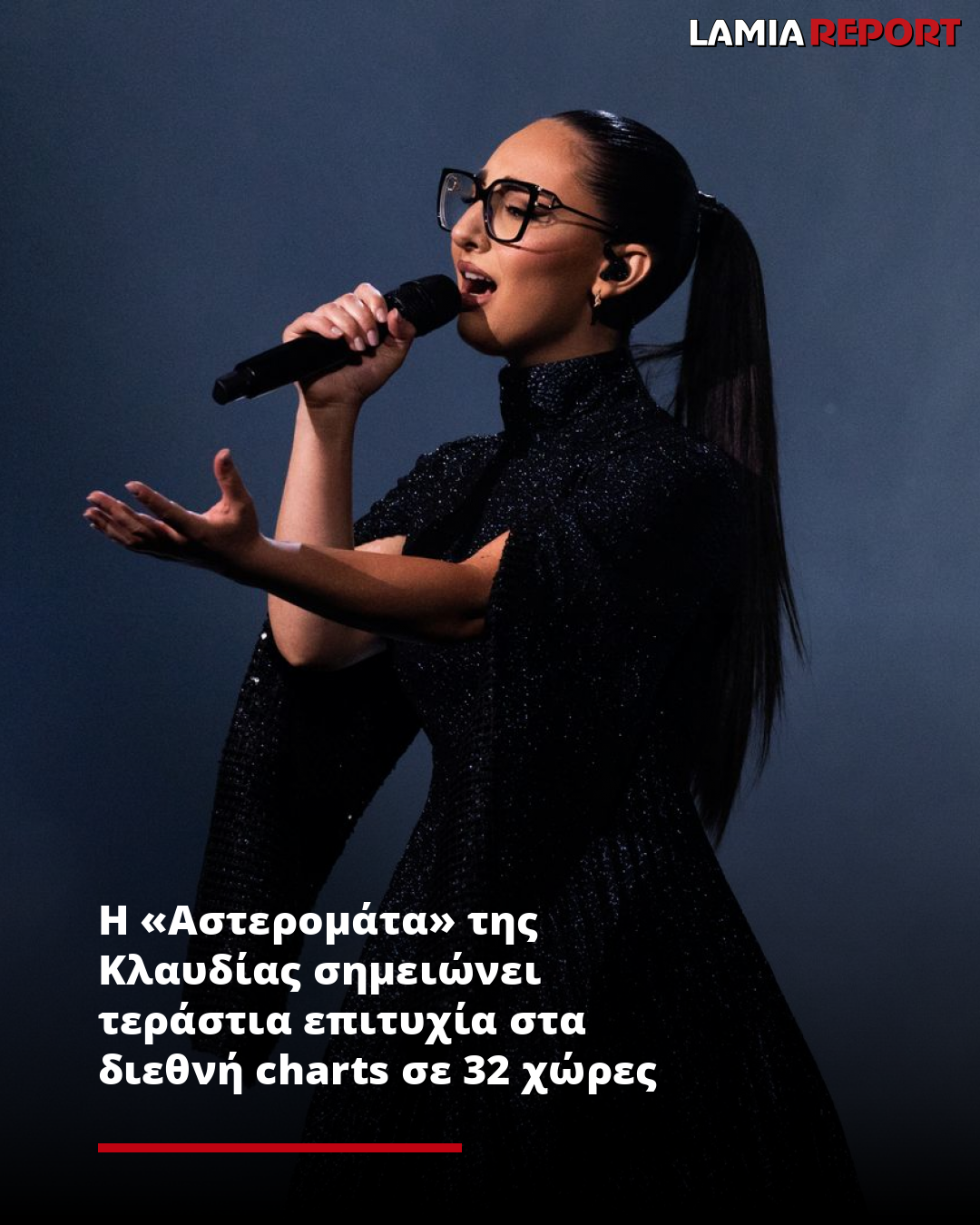 Η Κλαυδία και η «Αστερομάτα» συνεχίζουν να εντυπωσιάζουν το παγκόσμιο κοινό και φιγουράρουν στα digital charts 32 χωρών μετά και τη θριαμβευτική 6η θέση στη Eurovision, την υψηλότερη της Ελλάδας εδώ και 12 χρόνια. Σε ηλικία μόλις 22 ετών, η τραγουδίστρια ξεπέρασε τους 1,5 εκατομμύριο μηνιαίους ακροατές στο Spotify, αριθμός που την κατατάσσει στους κορυφαίους Έλληνες καλλιτέχνες.