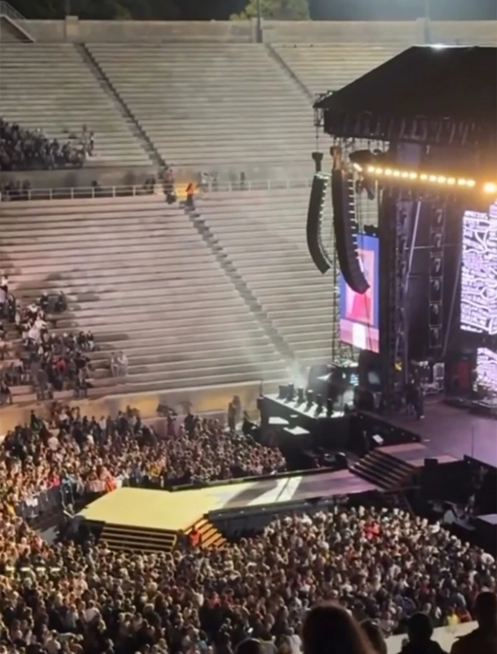 Παρά την κακοκαιρία και την έντονη βροχόπτωση που σημειώνεται στην Αθήνα, πλήθος κόσμου βρέθηκε στο Παναθηναϊκό Στάδιο για να απολαύσει τον Ρόμπι Γουίλιαμς.