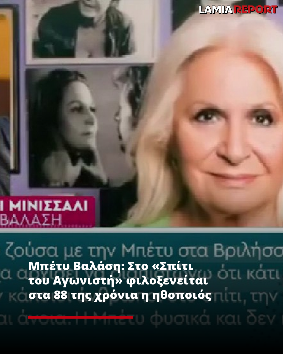Η Μπέτυ Βαλάση, η ηθοποιός που έγινε ιδιαίτερα αγαπητή στο κοινό ως «Λωξάντρα», στην ομώνυμη τηλεοπτική σειρά της ΕΡΤ, φιλοξενείται εδώ και μερικά χρόνια στο «Σπίτι του Αγωνιστή». Ο γιος της 88χρονης ηθοποιού, Νικόλα Χάρι Μινισσάλι, μίλησε στην εκπομπή «Πρωινό» τη 10η Ιανουαρίου, αναφέροντας πως η μητέρα του έχει αντιμετωπίσει σοβαρά προβλήματα με την υγεία της και πλέον μένει στο ίδρυμα περίθαλψης ηλικιωμένων αγωνιστών, υπό την αιγίδα του ΚΚΕ.