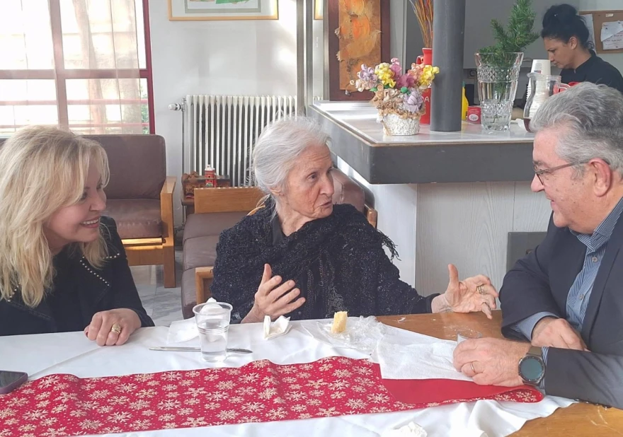 Ο Γενικός Γραμματέας της Κεντρικής Επιτροπής του ΚΚΕ, Δημήτρης Κουτσούμπας, επισκέφτηκε πριν μερικές ημέρες το ίδρυμα περίθαλψης ηλικιωμένων το «Σπίτι του Αγωνιστή». Κατά την επίσκεψή του συναντήθηκε και με την Μπέτυ Βαλάση, που φιλοξενείται τα τελευταία χρόνια στο ίδρυμα. Το απόγευμα της Τρίτης, 7 Ιανουαρίου, η Σεμίνα Διγενή δημοσίευσε στα μέσα κοινωνικής δικτύωσης, μερικές φωτογραφίες από την επίσκεψη: