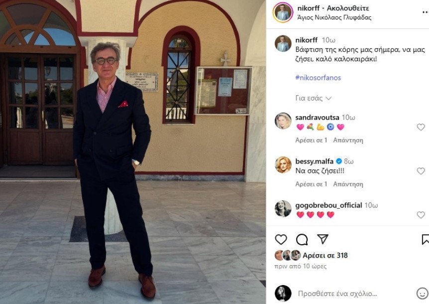 Το μυστήριο πραγματοποιήθηκε στον Ιερό Ναό Αγίου Νικολάου στη Γλυφάδα με την κόρη του ηθοποιού να παίρνει το όνομα, Λουίζα. Η ευχάριστη είδηση έγινε γνωστή μέσα από μία ανάρτηση που έκανε ο Νίκος Ορφανός στο Instagram. Συγκεκριμένα, δημοσίευσε μία δική του φωτογραφία, γράφοντας «βάφτιση της κόρης μας σήμερα, να μας ζήσει, καλό καλοκαιράκι!».