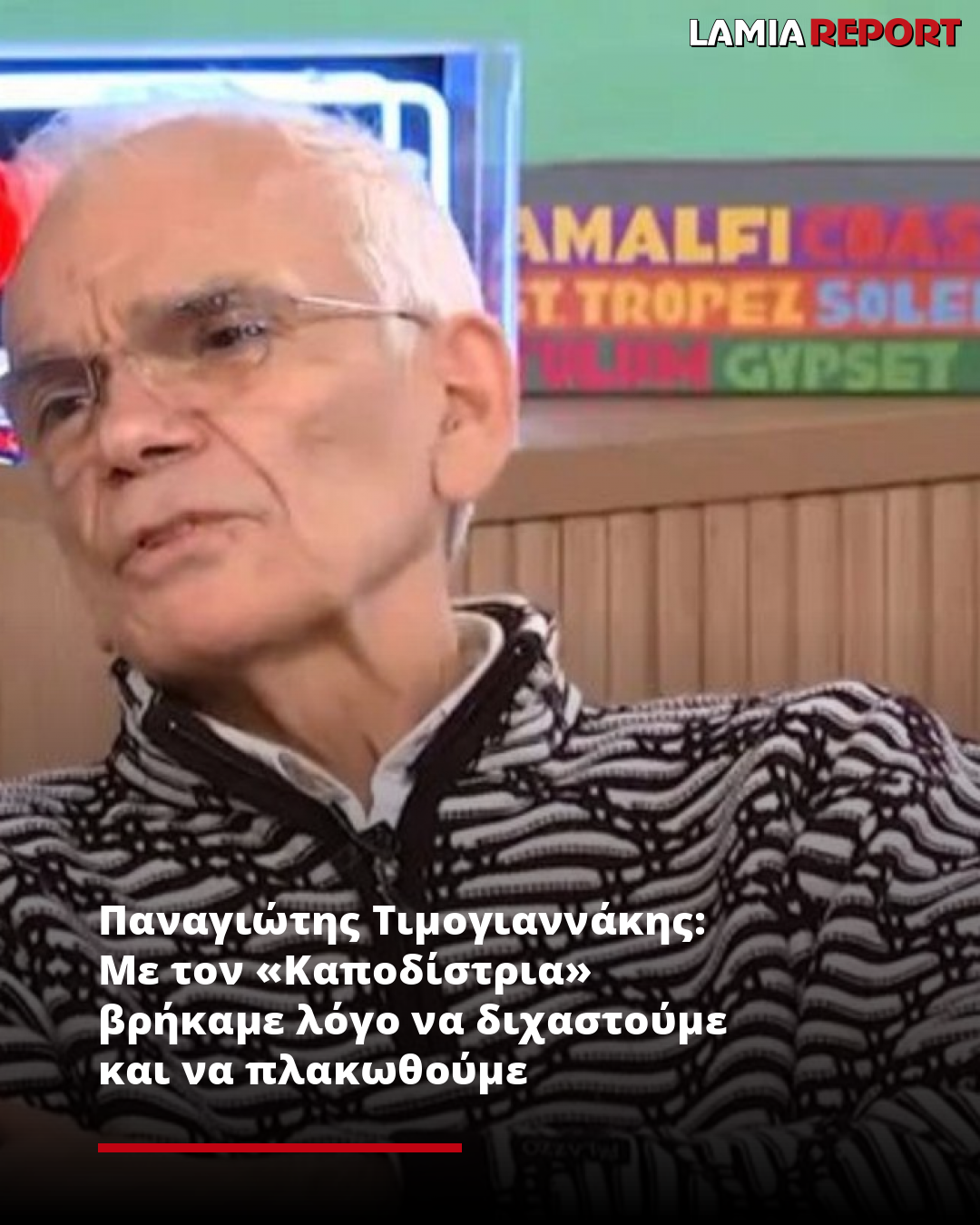 «Τους τρώει τη ζήλια, τον φθόνο. Τους τρώνε γενικά στην Ελλάδα τους ανθρώπους που κάνουν επιτυχία. Σε όλα τα επαγγέλματα, σε όλες τις ειδικότητες, σε όλους τους κλάδους. Τρωγόμαστε μεταξύ μας. Αυτό το διχαστικό υπάρχει για τα πάντα. Δηλαδή βλέπεις τώρα τι γίνεται τον “Καποδίστρια” που βρήκαμε λόγο να διχαστούμε και να πλακωθούμε…», είπε χαρακτηριστικά.