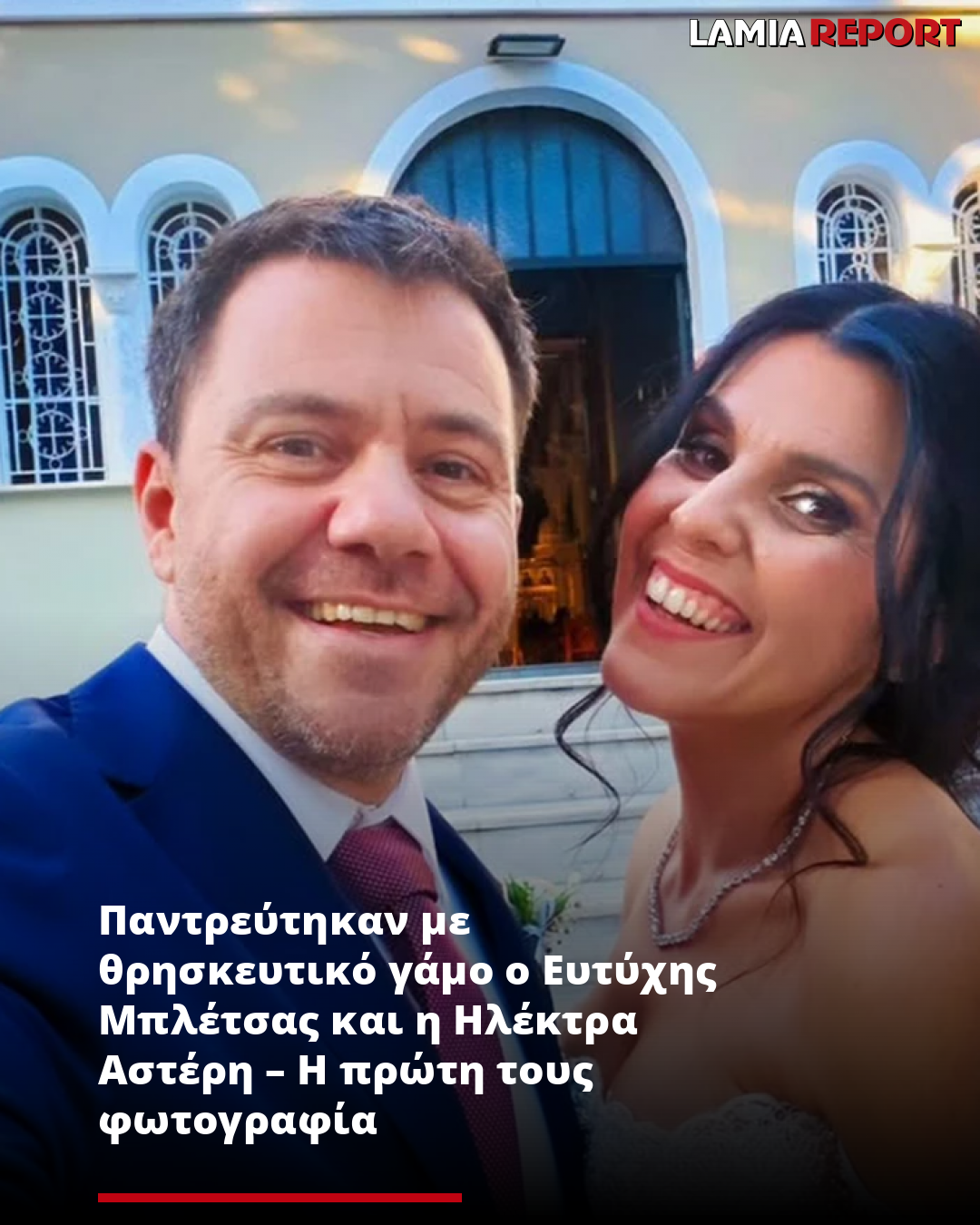 «Παντρευτήκαμε και σε εκκλησία! Θέλαμε να το κάνουμε καιρό. Έγινε κι αυτό λοιπόν!» έγραψε ο Ευτύχης Μπλέτσας στη λεζάντα της φωτογραφίας.