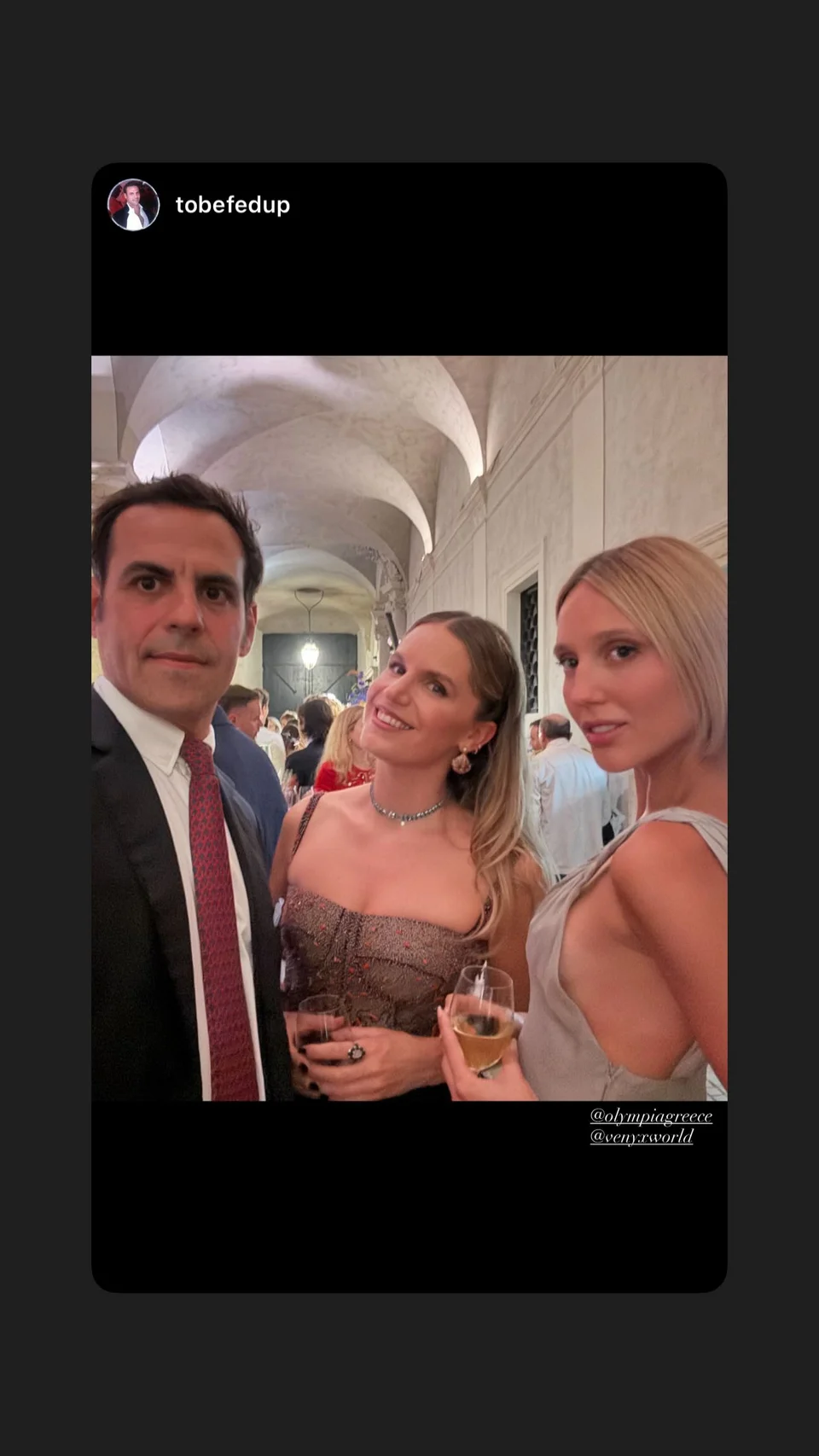 Το «παρών» έδωσαν τα ξαδέλφια του γαμπρού, Ευγενία, Ηλέκτρα και Σταύρος Νιάρχος με τη σύζυγό του, Ντάσα Ζούκοβα, αλλά και η καλή τους φίλη Μαρία Ολυμπία Ντε Γκρες με τον κοινό τους φίλο, τον Αργεντίνο ξενοδόχο Μάρτιν Πακανόφσκι.