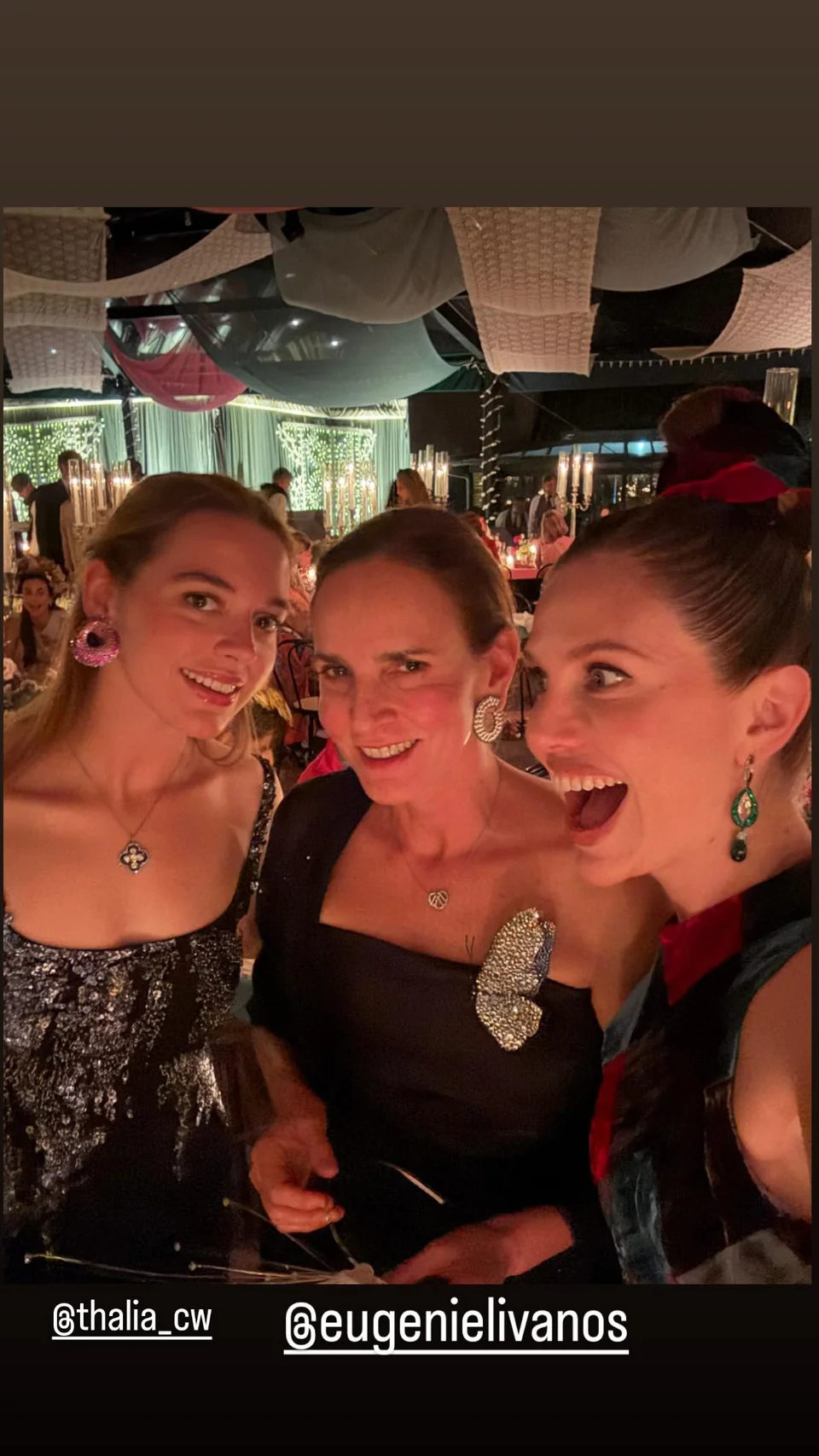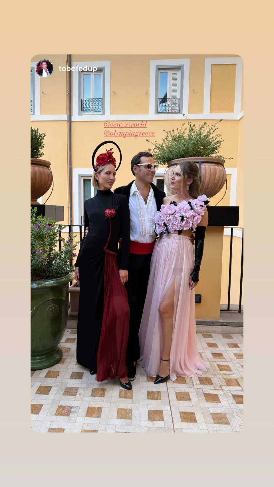 Η Ευγενία Νιάρχου επέλεξε ένα ροζ σύνολο Giambattista Valli με διάφανη φούστα και τοπ από απλικέ λουλούδια, η Ηλέκτρα ένα μαύρο φόρεμα σε διαφάνειες κεντημένο με αστεράκια, ενώ η Μαρία Ολυμπία ένα μαύρο με κόκκινες λεπτομέρειες και headpiece λουλούδια στο κεφάλι.