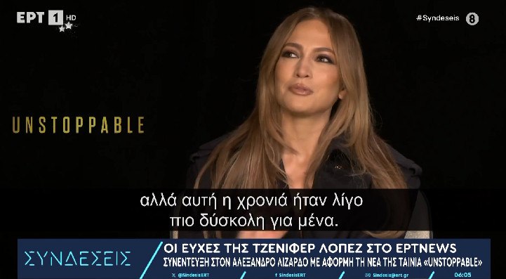 Η Τζένιφερ Λόπεζ με αφορμή τον πρωταγωνιστικό της ρόλο στην ταινία «Unstoppable», έδωσε συνέντευξη στην εκπομπή «Συνδέσεις» και στον Αλέξανδρο Ρωμανό Λιζάρδο, κάνοντας μία ιδιαίτερη αναφορά στην Ελλάδα, στέλνοντας παράλληλα τις ευχές της στους Έλληνες για το νέο έτος. Πιο συγκεκριμένα, η Λατίνα σταρ, είπε κατά τη διάρκεια της συνέντευξής της: «Έχω πολύ όμορφες αναμνήσεις από την Ελλάδα κι εύχομαι σε όλους τους Έλληνες: Να έχετε την καλύτερη, την πιο χαρούμενη, την πιο όμορφη χρονιά. Θα έχουμε μια καταπληκτική χρονιά και ανυπομονώ τόσο πολύ. Τόσο όμορφα πράγματα έρχονται».