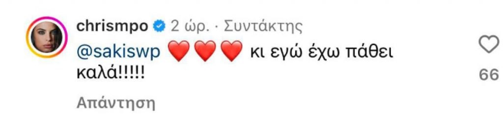 Μετά το σχόλιο του Σάκη Τανιμανίδη, η Χριστίνα Μπόμπα έγραψε: «Κι εγώ έχω πάθει καλά».