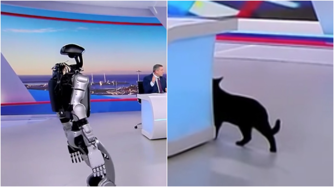 «Αναστάτωση» στο πλατό του ΣΚΑΪ με το ρομπότ Σοφία, τρόμαξε ο γάτος της εκπομπής και έφυγε τρέχοντας