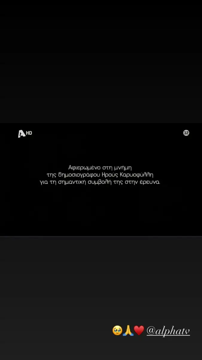 «Αφιερωμένο στη μνήμη της δημοσιογράφου Ηρούς Καριοφύλλη για τη σημαντική συμβολή της στην έρευνα», ανέγραφε η κάρτα που εμφανίστηκε στο τέλος του επεισοδίου
