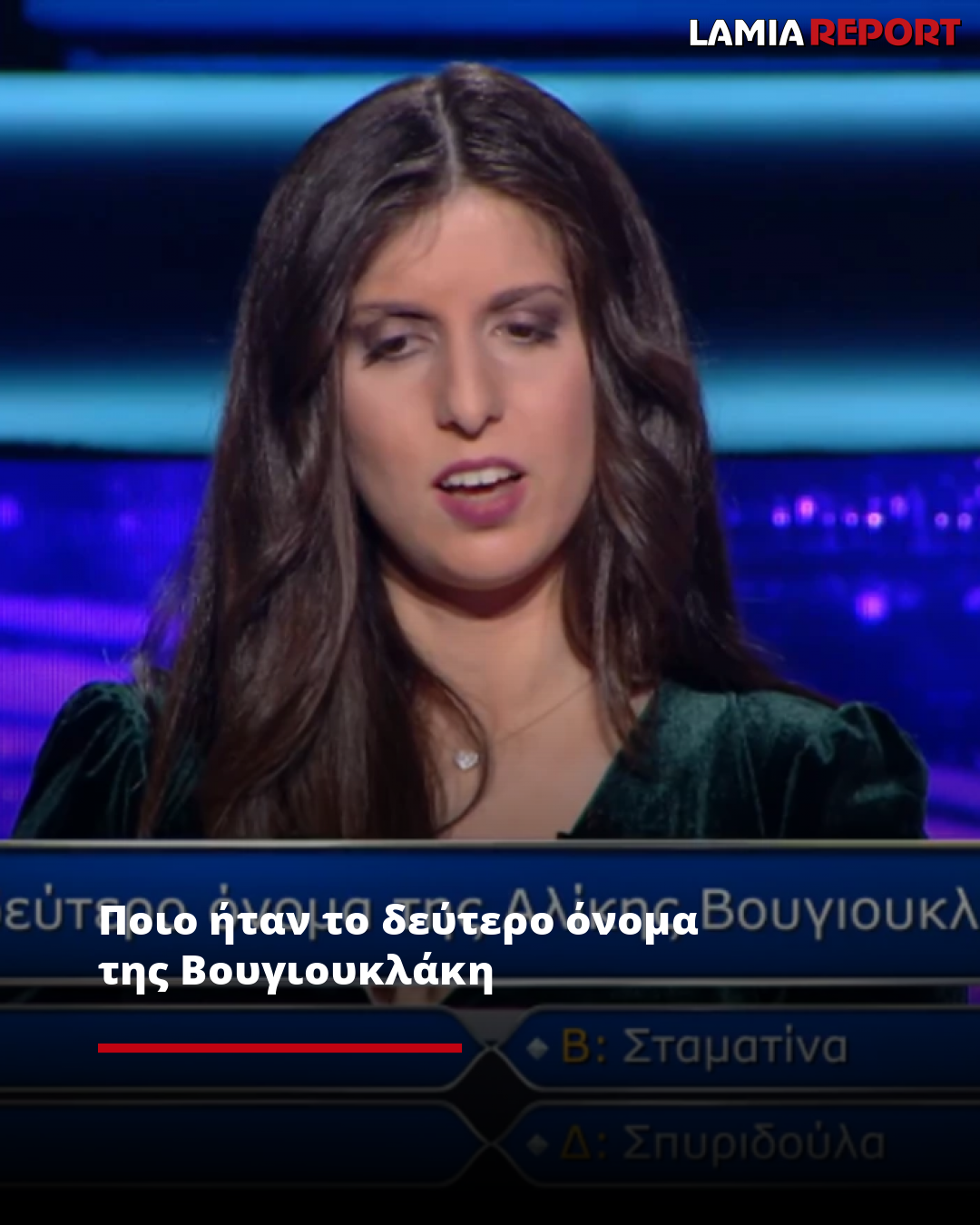 Η παίκτρια ξαφνιάστηκε. «Πρώτη φορά ακούω ότι είχε δεύτερο όνομα η Βουγιουκλάκη», δήλωσε με ειλικρίνεια. Παρ’ όλα αυτά, χωρίς να κρύψει τη σύγχυσή της, άφησε τη διαίσθηση να την καθοδηγήσει: «Κάτι μου λέει το Σταματίνα… Να το ’χα δει πουθενά;» είπε, πριν επιλέξει το «Β: Σταματίνα».